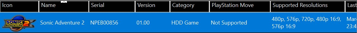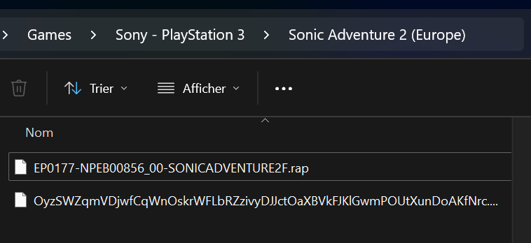 Avoir télécharger la version PS3 de Sonic Adventure 2 sur votre PC (c'est illégal, je ne donne donc aucun lien !) pour y jouer sur l'émulateur RPCS3, le fichier ressemblera à ça :