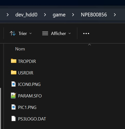 7.b refaite la même manip mais cette fois ci ouvrez la fenêtre dans "dev_hdd0/game/NPEB00856"