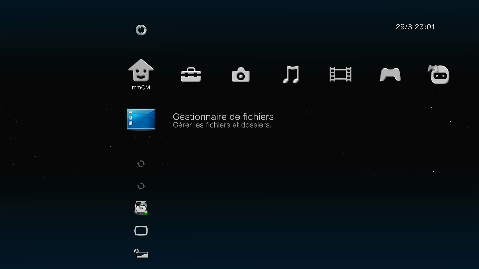 , allez simplement à celui qui ressemble au mien puis lancer le Gestionnaire de fichiers (tout a gauche du menu) :