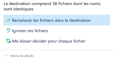 8.a Cliquez sur "Remplacer les fichiers dans la destination"
