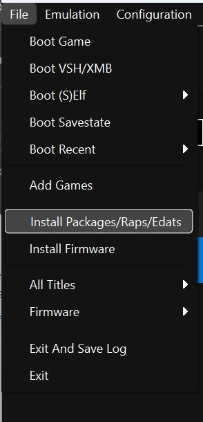 2.a Je vais d'abord expliqué comment faire sur PC je n'entrerai pas trop dans les détails mais en gros une fois que vous avez installer correctement votre émulateur de ps3 (allez voir les explication ici : https://rpcs3.net/quickstart ) cliquez sur "File" puis "Install Packages/RAPS/EDATS"
